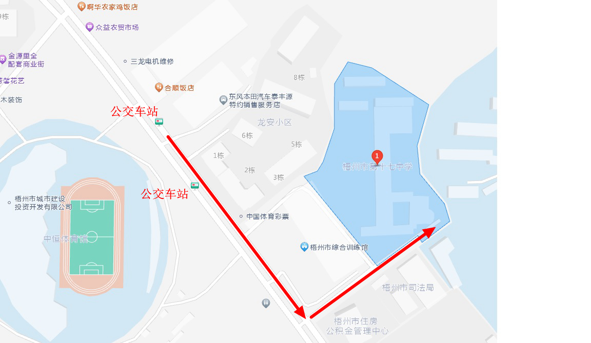 公交車參考:10路、32路、49路、49路延長線、蒼梧城鄉(xiāng)6路。進(jìn)入梧州學(xué)院校區(qū)統(tǒng)一在東大門進(jìn)入,考點(diǎn)門口處于交通干道,送考車輛只能在東門外短暫停留,南門及其他門不得進(jìn)入無法核驗(yàn)考生身份。