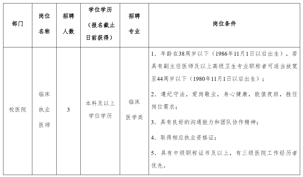 擬公開招聘醫(yī)務工作人員3名,具體崗位及相關條件要求詳見下表: