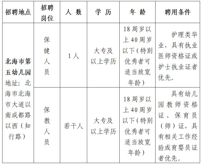 (二)報名方式:符合條件的報考人員請在報名期間將報名表發(fā)至北海市第五幼兒園郵箱:bhswy@beihai.gov.cn,郵件主題為“報名應(yīng)聘崗位+姓名”。
