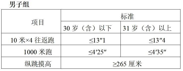 研究生及以上學(xué)歷報考人員參加體能測試三項內(nèi)容中有兩項達標(biāo)的,視為合格。非研究生及以上學(xué)歷報考人員體能測試三項全部達標(biāo)方為合格。