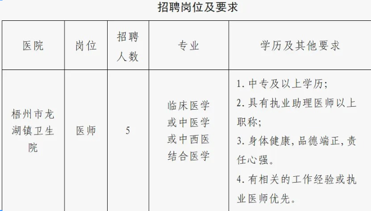 原文標題:2025年梧州市龍湖鎮(zhèn)衛(wèi)生院招聘醫(yī)生5名