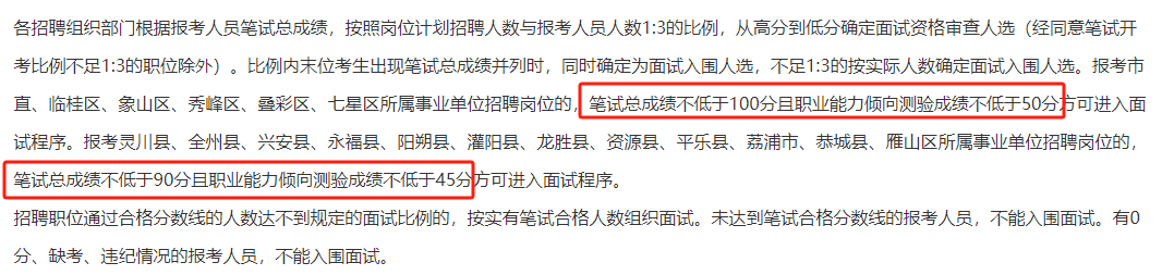 值得一提的是桂林事業(yè)單位早已在招錄公告表明桂林事業(yè)單位各區(qū)(縣)筆試合格分?jǐn)?shù)線:
