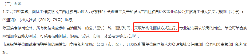 面試內(nèi)容主要為崗位應(yīng)具備的基本能力和專(zhuān)業(yè)知識(shí)。根據(jù)招聘崗位的需要,可以采用結(jié)構(gòu)化面試、專(zhuān)業(yè)技能考評(píng)、實(shí)際操作能力測(cè)試等方法,主要測(cè)評(píng)考生的業(yè)務(wù)素質(zhì)、專(zhuān)業(yè)知識(shí)應(yīng)用和潛在能力等方面的綜合素質(zhì)。具體形式由組織實(shí)施部門(mén)確定。