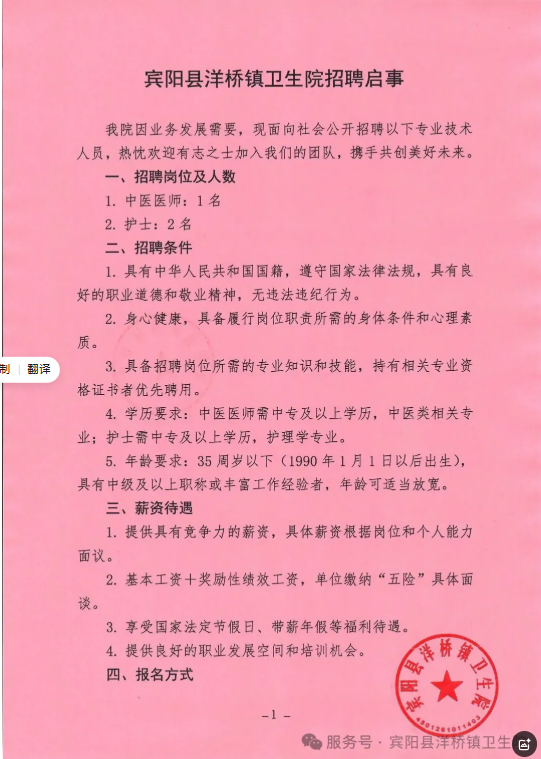 原文標(biāo)題:賓陽(yáng)縣洋橋鎮(zhèn)衛(wèi)生院招聘啟事