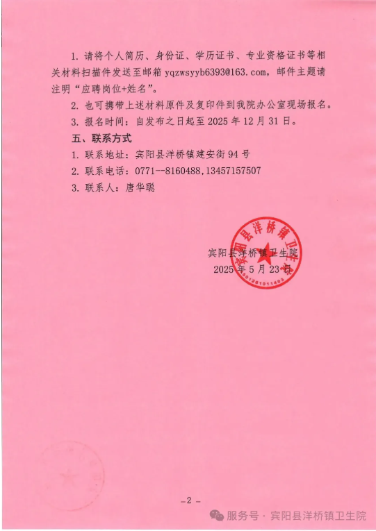 2025年廣西賓陽(yáng)縣洋橋鎮(zhèn)衛(wèi)生院招聘3人