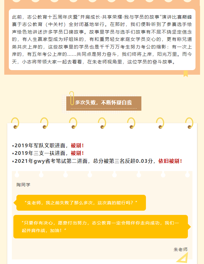 他成功上岸后,滿(mǎn)懷感激地給我們志公教育全體老師送來(lái)了錦旗。作為他的報(bào)班老師,我很欣慰看到他的努力得到了回報(bào)。他的勵(lì)志奮斗上岸故事也讓我深受鼓舞,讓我深刻認(rèn)識(shí)到,只要有堅(jiān)定的目標(biāo),持之以恒的努力,善于借鑒他人成功的經(jīng)驗(yàn),我們也能在工作中取得更多的成就與進(jìn)步!幫助更多學(xué)員實(shí)現(xiàn)他們的夢(mèng)想!向?qū)W員學(xué)習(xí),也向所有致力于努力備考奮斗的學(xué)員們致敬!