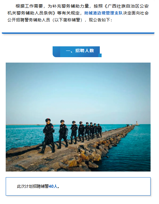 防城港邊境管理支隊(duì)公開招聘警務(wù)輔助人員40人