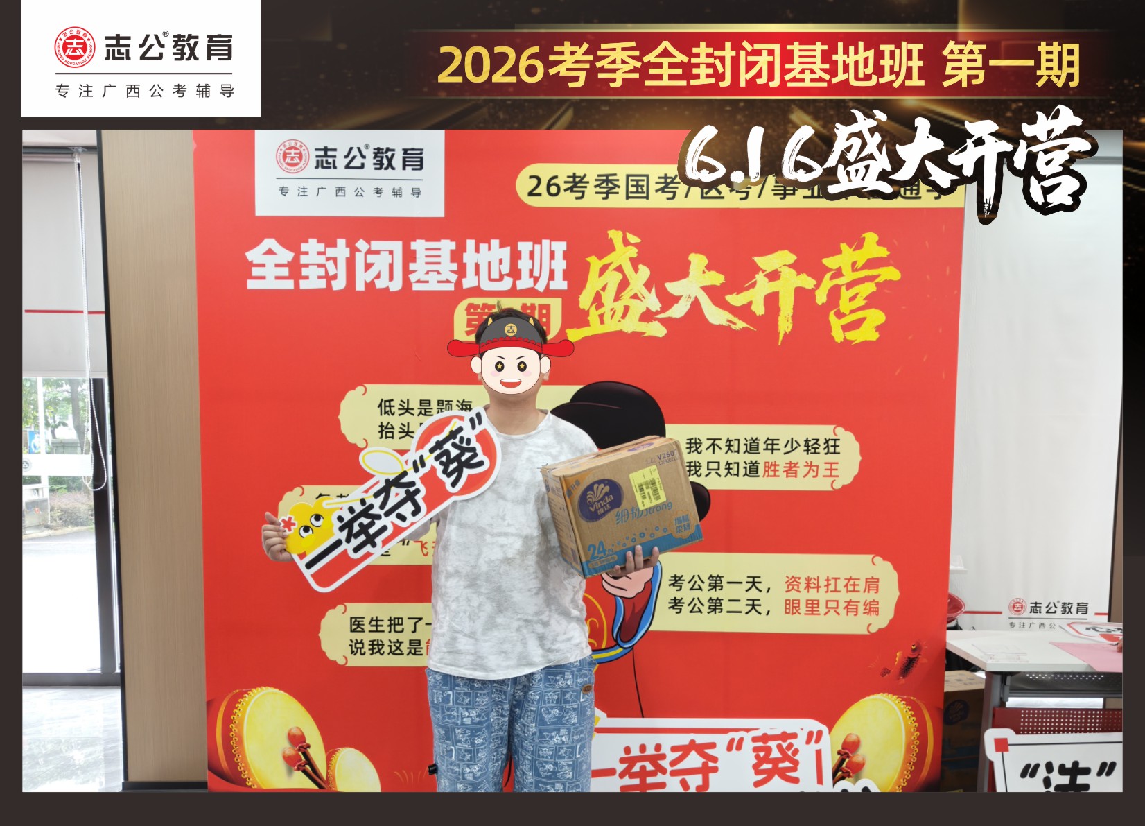 由于這段時間受臺風影響,南寧迎來下雨天,但學員們滿懷先一步備考,快一步成功圓夢的滿滿炙熱信心,早早就在志公教育(中關(guān)村)全封閉基地前臺等候,6月16日,志公教育26考季全封閉基地班第1期的學員們齊聚一堂,正式開啟他們的公考備戰(zhàn)之旅。簽到環(huán)節(jié)作為基地班課程的第一站,不僅是對學員們的歡迎儀式,更是他們邁向夢想的第一步。