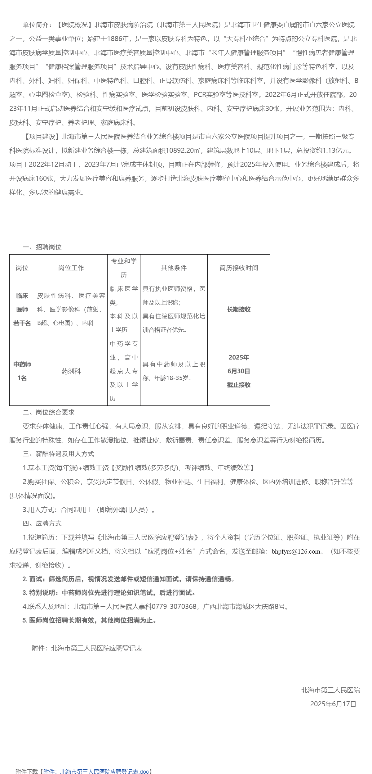 原文標(biāo)題:北海市第三人民醫(yī)院招聘啟事