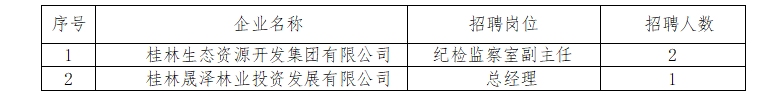根據(jù)桂林生態(tài)資源開發(fā)集團有限公司經(jīng)營管理和發(fā)展需要,現(xiàn)面向社會公開招聘集團本部及下轄子公司2個崗位人員,有關(guān)事項公告如下: