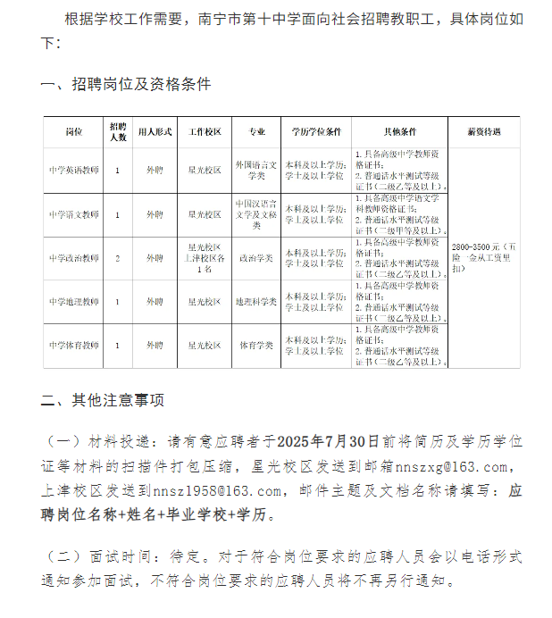 原文標(biāo)題:南寧市第十中學(xué)招聘啟事