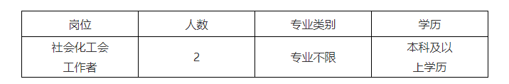 為進一步加強工會工作,我會根據(jù)自身工作需求,現(xiàn)面向社會公開招聘社會化工會工作者2名?,F(xiàn)將招聘的有關事項公告如下: