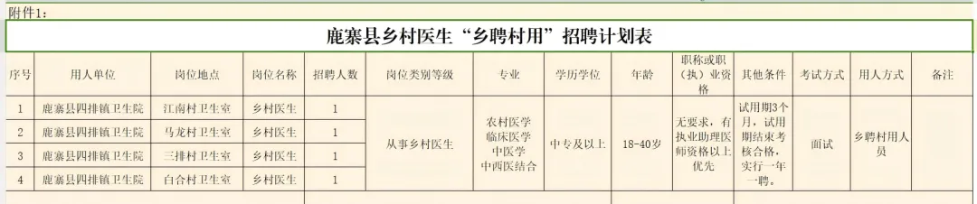 2025年柳州鹿寨縣四排鎮(zhèn)衛(wèi)生院鄉(xiāng)村醫(yī)生“鄉(xiāng)聘村用”招聘4人