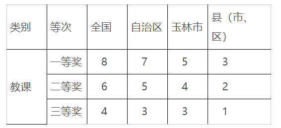 (5)現(xiàn)場教課比賽獲獎:參加教育行政部門或業(yè)務部門逐級選拔的縣以上的教課比賽獲得一、二、三等獎勵給予計分。此項最高不超過10分。具體計分如下: