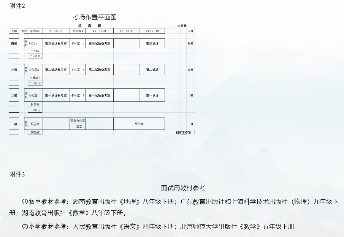 (二)面試內(nèi)容:面試主要是通過試講考察考生的專業(yè)素質(zhì)和教育教學(xué)綜合素質(zhì),包括:對教材的分析和把握程度、專業(yè)知識(shí)能力、教學(xué)設(shè)計(jì)、教學(xué)方法、教師素養(yǎng)等。試講教材為我縣相應(yīng)崗位學(xué)校用書,詳見面試用教材參考(附件3)。