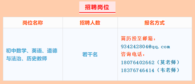 報名實(shí)行網(wǎng)絡(luò)形式,有意者請將簡歷投至學(xué)校郵箱934242804@qq.com。具體面試時間電話通知。