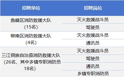 為滿足社會經(jīng)濟(jì)迅速發(fā)展對消防力量的需求,積極適應(yīng)新形勢新任務(wù)新要求,結(jié)合單位編制及工作情況需要,柳州市消防救援支隊(duì)擬面向社會公開招聘政府專職消防員、鄉(xiāng)鎮(zhèn)專職消防員,熱忱歡迎熱愛消防、銳意進(jìn)取、敢于挑戰(zhàn)的廣大有志青年加入。詳情如下: