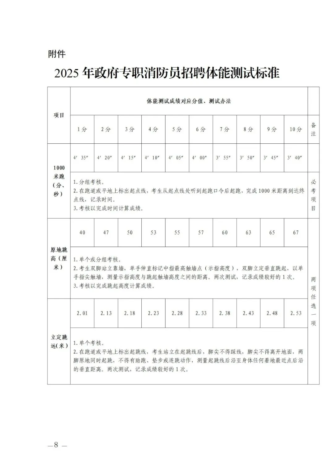 附件2:體能標(biāo)準(zhǔn)測試標(biāo)準(zhǔn)