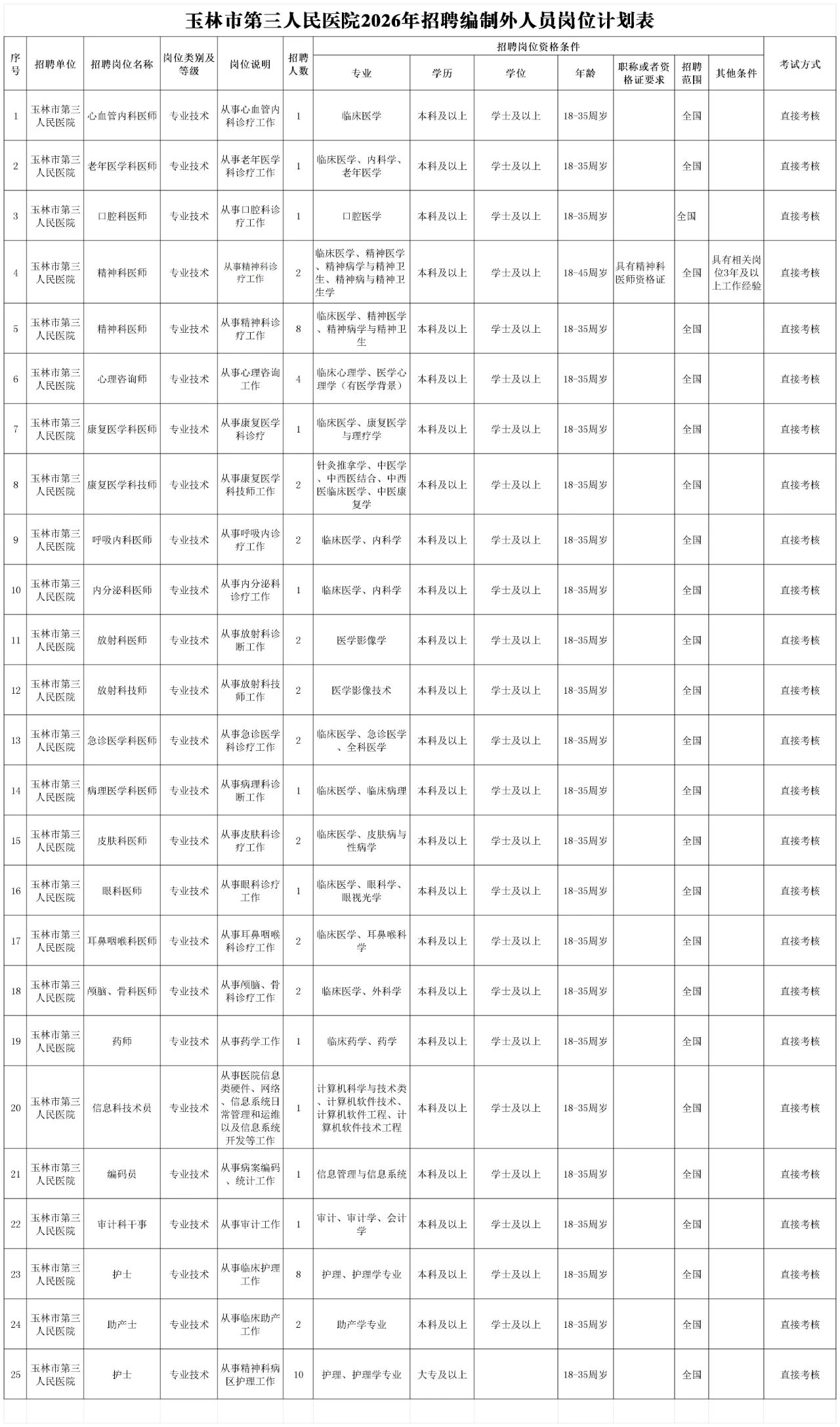 2026年玉林市第三人民醫(yī)院公開招聘編制外人員公告