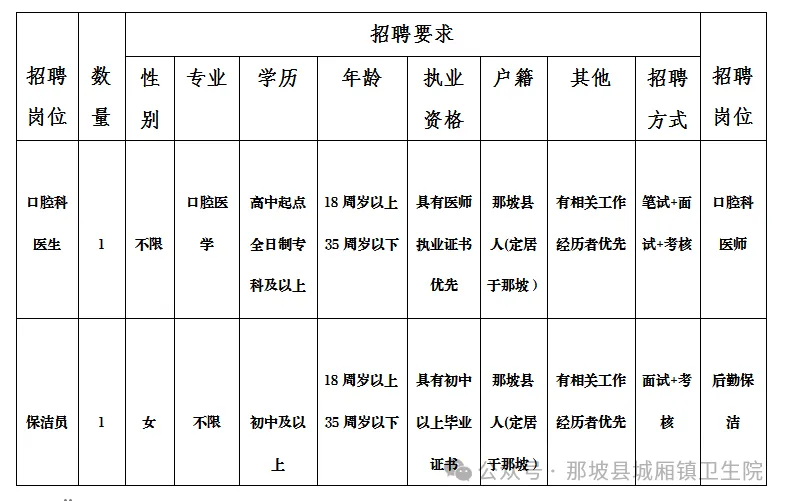原文標題:【招聘信息】那坡縣城廂鎮(zhèn)衛(wèi)生院公開招聘編外工作人員公告
