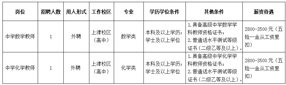 根據學校工作需要,南寧市第十中學上津校區(qū)(高中部)面向社會招聘教職工,具體崗位如下: