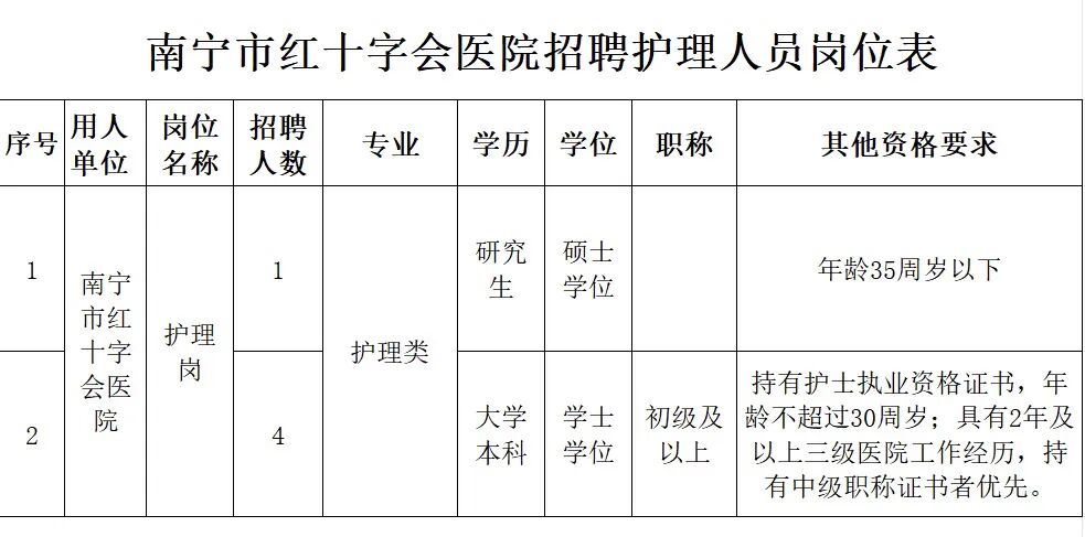 原文標(biāo)題:2025年南寧市紅十字會醫(yī)院招聘護理人員