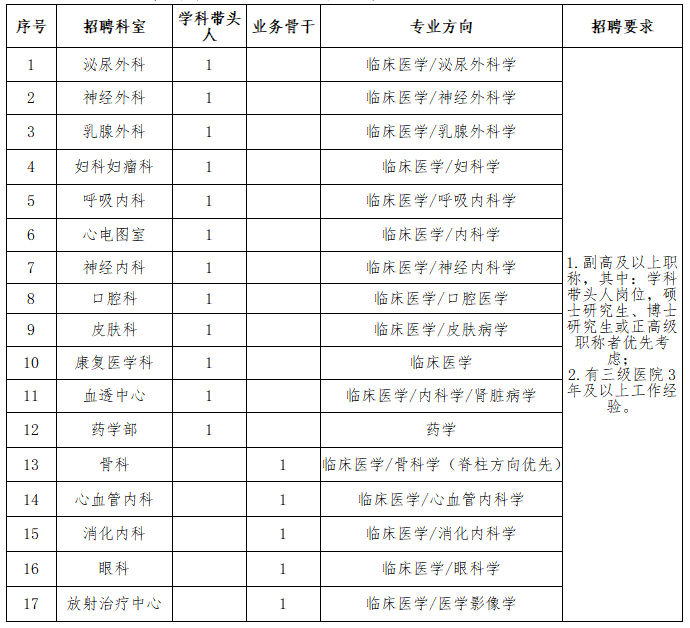 學(xué)科帶頭人或業(yè)務(wù)骨干崗位