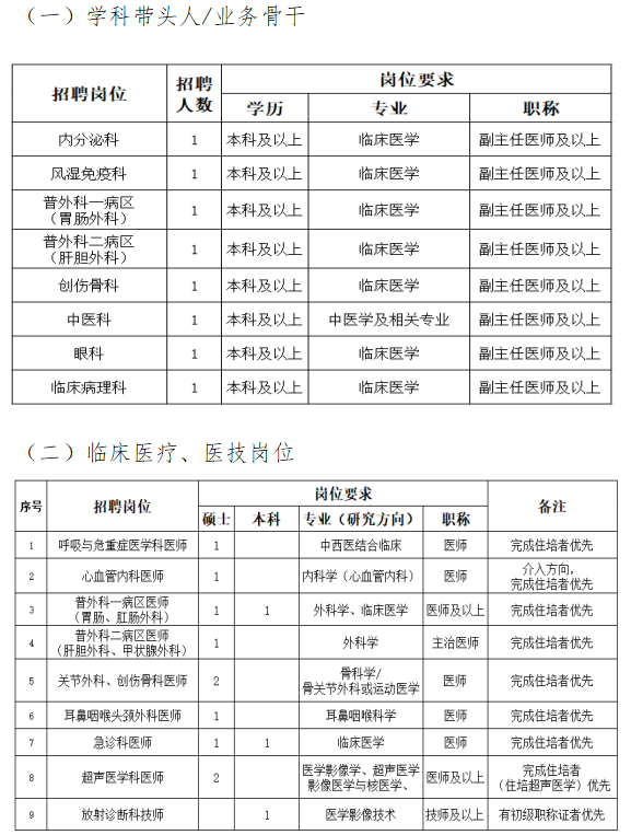 根據(jù)醫(yī)院發(fā)展需要,現(xiàn)面向社會招聘臨床崗位各層次人才,有關(guān)招聘事項公告如下: